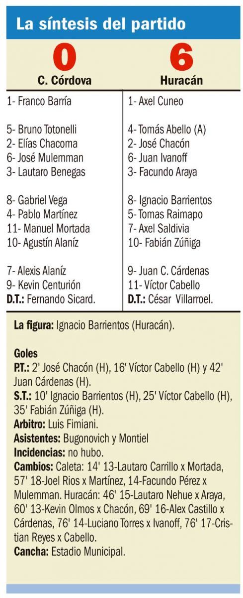 Lo propio, Huracán le dio forma con mucha suficiencia y desde el mismo amanecer del partido, porque un tiro libre de José Chacón abrió a la cuenta a los 2 minutos como para empezar a edificar lo que luego se convirtió en goleada.