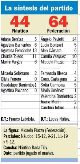 “La Fede” aseveró que está para pelear el título, porque luego de ser segundo en la primera instancia clasificatoria, le ganó a Náutico en el inicio de los play-offs y el martes, en el segundo punto de la serie y tras quedar abajo en el primer cuarto, comenzó a volcar todo a su favor desde los segundos 10 minutos cuando metió un parcial de 21 a 9, porque además de pasar al frente en el marcador, la ventaja le permitió seguir controlando el juego y sostener el triunfo hasta el final.