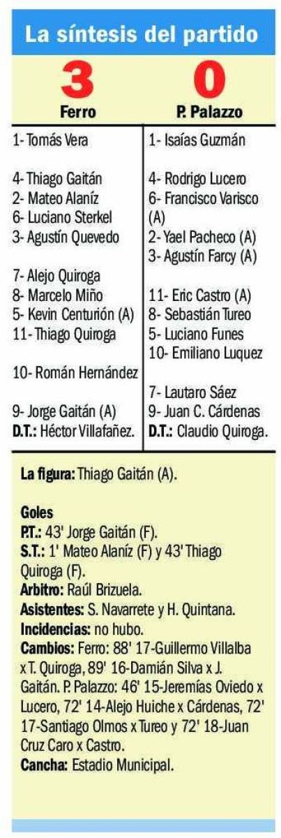 En los primeros instantes del complemento, Ferro volvió a golpear. Un tiro de esquina se cierra y toca el travesaño, el rebote le queda a Mateo Alaniz, quien hace inolvidable el debut en primera, con una tarde de gol.
