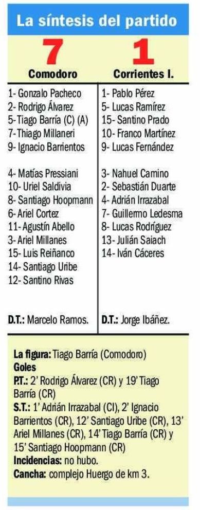 Comodoro 7: Tiago Barría 2, Rodrigo Álvarez, Ignacio Barrientos, Santiago Uribe, Ariel Millanes y Santiago Hoopmann.
