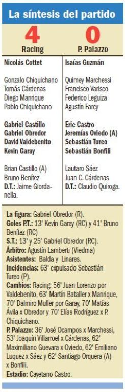 Racing goleó a Palazzo y accedió al Torneo Regional Federal