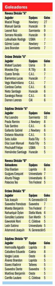 Nueva Generación 6 (Joaquín Arzamendia 3, Tiziano Rodríguez, Joaquín Tula y Martín González) / Stella Maris 2 (Dylan Nahuelquín 2).