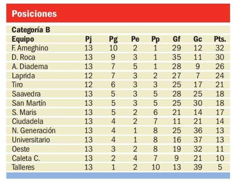 Grupo impar: F. Ameghino, Diadema o Laprida, Tiro Federal, San Martín, Ciudadela, Universitario y Caleta Córdova.