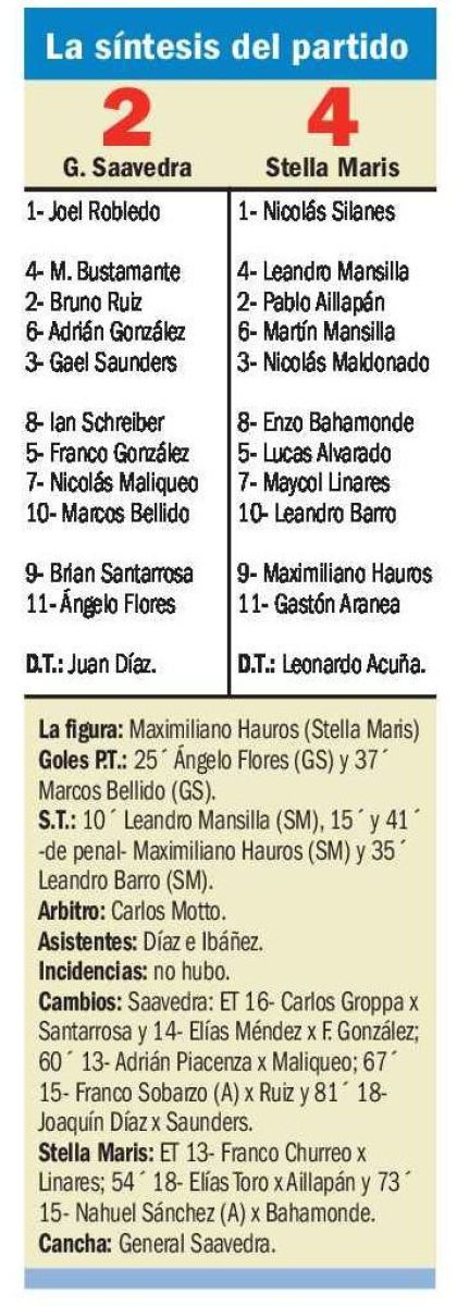 El conjunto de Stella Maris frenó la racha ganadora de General Saavedra y en gran reacción en el segundo terminó imponiéndose 4-2, tras quedar 0-2 al cabo del primer tiempo.