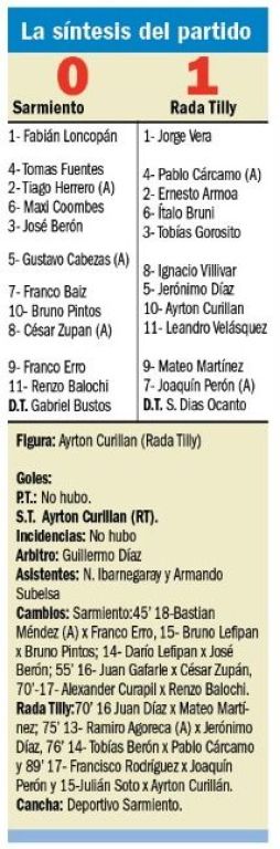 Cumpliendo una de sus mejores actuaciones del torneo, Rada Tilly se alzó ayer con una gran victoria por uno a cero sobre el Deportivo Sarmiento.