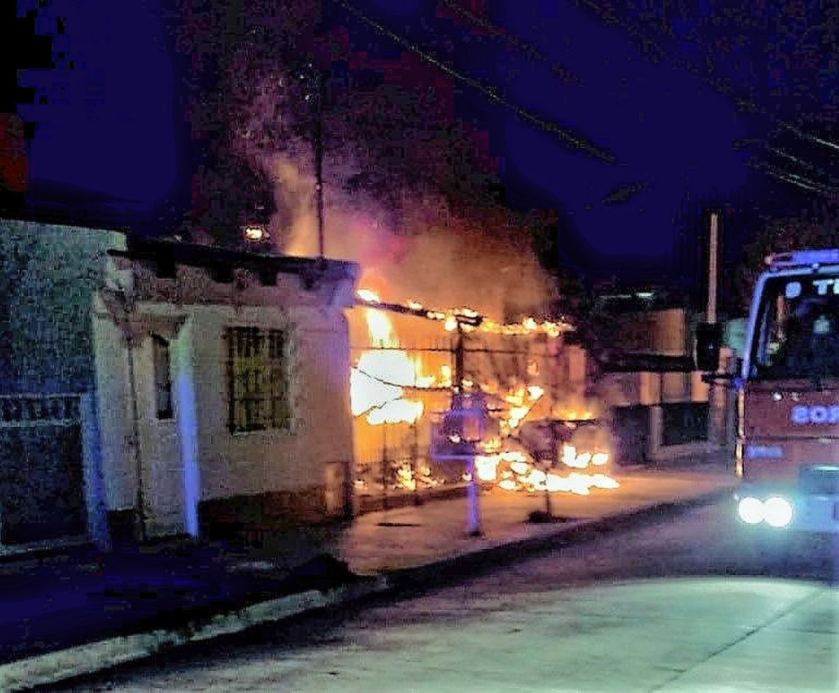 Fue en la calle A.P.Bell al 1.400 en donde vive una pareja de jubilados de 69 y 73 años, quienes afortunadamente no sufrieron consecuencias por el rápido y destacable accionar del policía Alan Huentequeo que se metió a la propiedad y los rescató rápidamente al ver que el fuego se les estaba yendo para la vivienda mientras se esperaba la llegada de los bomberos.