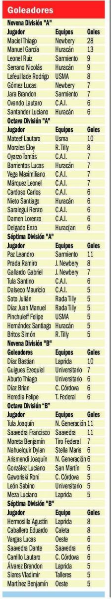 Caleta Córdova 1 (Franco Carrizo) / Laprida 6 (Joaquín González 2, Bastian Díaz 2, Ciro Arias y Fabricio Vásquez).