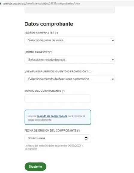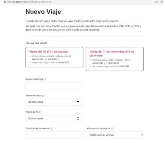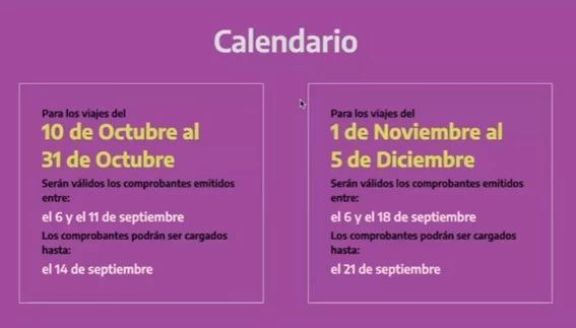 Quienes programen su viaje del 10 al 31 de octubre, deben comprar sus servicios entre el 6 y el 11 de septiembre y cargar sus comprobantes hasta el 14 de septiembre en previaje.gob.ar.