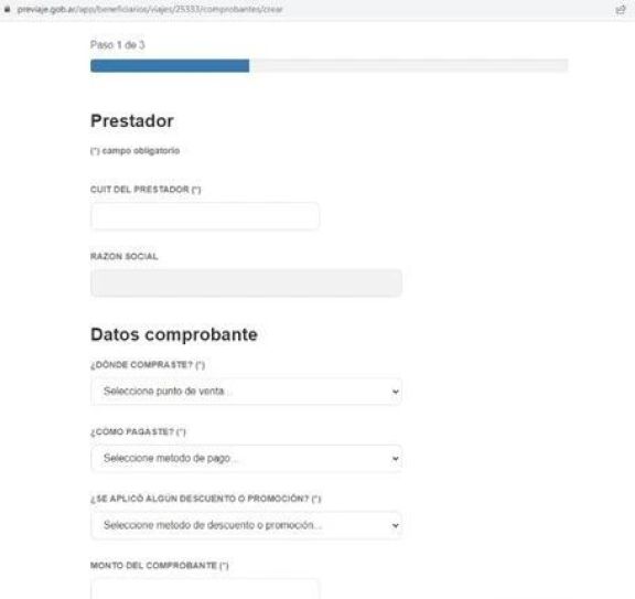 9. Completar los datos del viaje: nombre, fecha, cantidad de pasajeros, vínculo, itinerario.