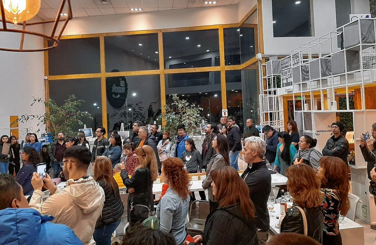 La joven que Pugni retrató en 1996 se llama Victoria Ormazábal, y el jueves 1 de septiembre estuvo presente en la inauguración de la muestra fotográfica en el espacio “Siwork”. “Victoria vino especialmente a esta muestra. El de ella fue uno de los primeros fotomontajes que hice en negativo, hace 26 años. Consiste en dos tomas superpuestas, no hay posibilidad de prueba y error, sí o sí hay que fotomontar en el negativo. Es una imagen del rostro de ella, que a mí particularmente me sensibilizó mucho, desde la pasión y el gusto del retrato que yo buscaba en ese momento. Fotomonté el rostro de Victoria con una imagen del Cerro Chenque y la ciudad, con gaviotas volando en el fondo”, contó el entrevistado.