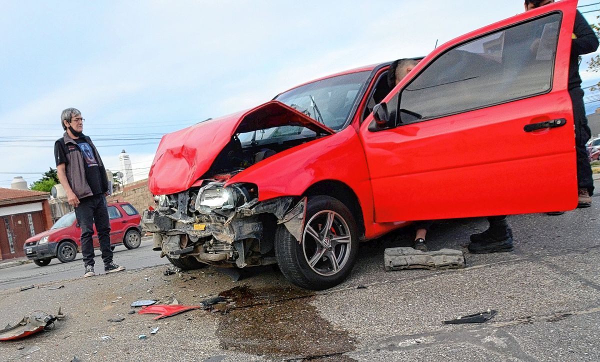 Y casi a la misma hora que el anterior se produjo una fuerte colisión vehicular en intersección de la avenida EE.UU. y calle El Chubut que resultó con un hombre y una mujer con contusiones corporales aparentemente leves.