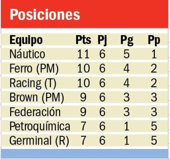 Esta noche va por un triunfo para consolidarse en el escalón más alto, aunque una derrota no lo dejaría mal, porque pasaría a compartir el primer lugar y, luego de jugar mañana ante Brown, nuevamente de visitante, afrontará los últimos cuatro compromisos de local. De igual manera tiene grandes chances de llegar a la definición, que la protagonizarán los cuatro primeros.