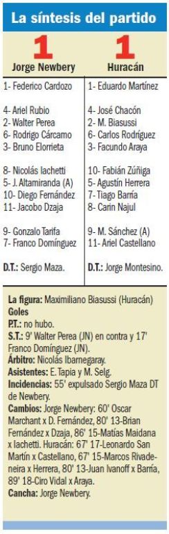 Fue empate. Un sabor a poco para ambos, porque Newbery puede perder la punta hoy ante C.A.I., mientras que ahora, Huracán no dependerá de sí mismo para tratar de quedarse con el título.
