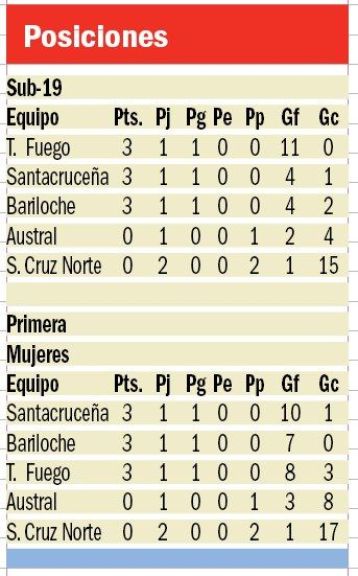 Las primeras en salir a la cancha fueron las chicas juveniles, que luego de ir ganando dos a cero con las conversiones de Azul Barboza, no consiguieron sostener el resultado y terminaron perdiendo cuatro a dos frente a Bariloche, mientras que un rato más tarde fue el turno de las mayores, que se vieron ampliamente superadas por Tierra del Fuego y recién en el final pudieron descontar con los dos tantos de Rocío Chiara y el restante de Julia Leiva de penal.