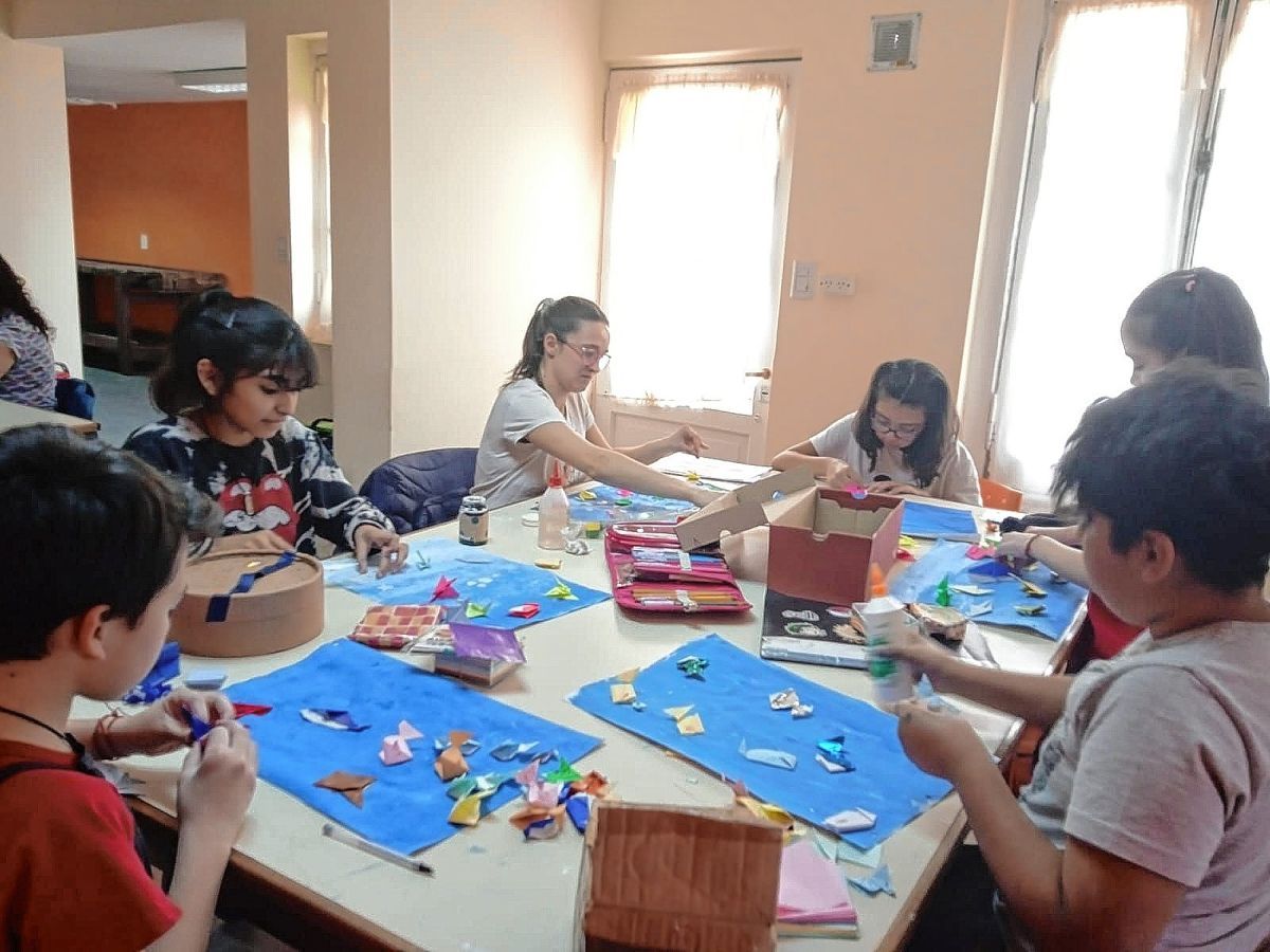 Por una parte, los chicos de los talleres de Origami y de Literatura trabajaron en temas alusivos al cumpleaños del barrio, mientras que los jóvenes del Colegio Hipólito Yrigoyen -con la autorización de la directora del establecimiento Andrea Velazco- realizaron una visita para interiorizarse de la historia del barrio atesorada por la vecinal.