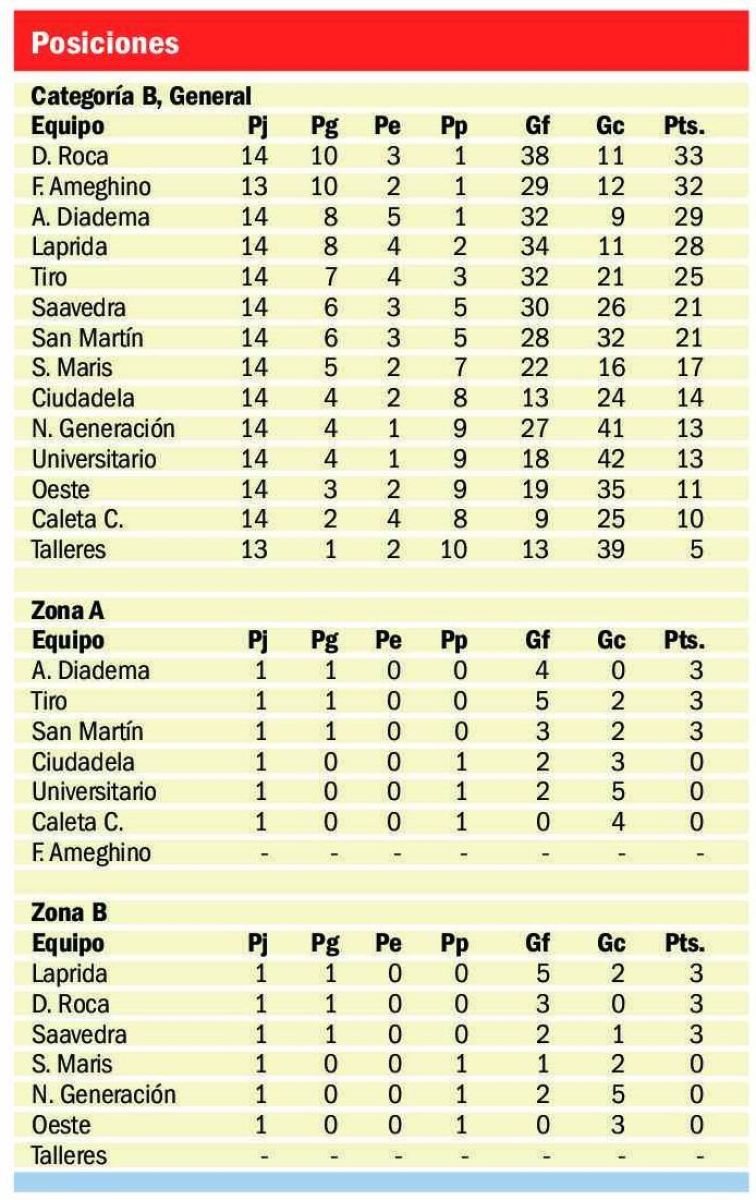 En el otro grupo, hay tres líderes, Laprida, Roca y Saavedra, equipos que ganaron en la primera fecha.