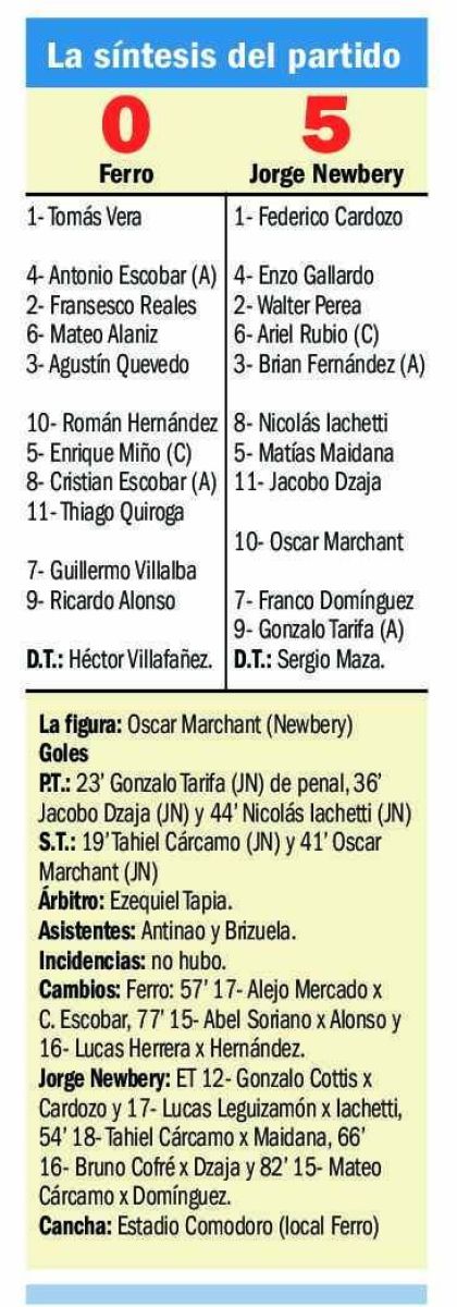 Ayer fue totalmente superior al elenco de kilómetro cinco y lo ganó claramente con los goles de Gonzalo Tarifa de penal, Jacobo Dzaja, Nicolás Iachetti, Tahiel Cárcamo y Oscar Marchant para disfrutar de otra buena actuación y sumar once partidos sin perder, con 9 triunfos y dos empates. En tanto que Ferro -con un objetivo totalmente diferente-, sabe que ante este tipo de rivales tiene recursos recortados y que se pueden perder; apostando a los chicos ybuscando el propósito de conservarse en la categoría.