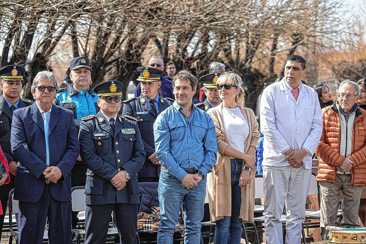 Estuvieron presentes el jefe comunal, Jorge Villegas, el comisario César Brandt en representación de la Policía del Chubut que apadrina el establecimiento; el subsecretario de Asuntos Municipales de Chubut, Luis Aguilera, el intendente de Río Mayo, Alejandro Avendaño; jefes de seguridad, excombatientes, docentes, alumnos y exalumnos.