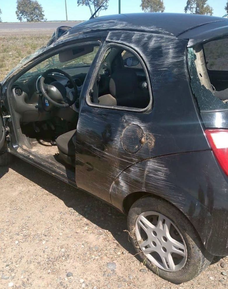 El hecho se registró momentos antes de las once y media y el vehículo siniestrado resultó ser un Ford Ka oscuro que iba aparentemente hacia Rawson y que una vez que pasó por un retardador (lomo de burro) que está situado frente al barrio 3 de Abril, en la doble trocha, cuando abandonaba la playa; se fue repentinamente de la calzada y terminó dando al menos un tumbo; quedando en posición normal a unos metros de la banquina.
