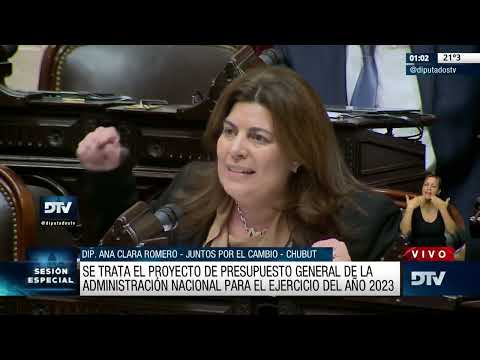 Ana Clara Romero, diputada nacional por Chubut de Juntos por el Cambio (JxC), votó en contra de la Ley de Presupuesto Nacional 2023, por considerar insignificantes las partidas destinadas obras para Chubut en 2023 y por rechazar los recortes presupuestarios a Educación que agravan la ya trágica situación que atraviesa el sector en la provincia.