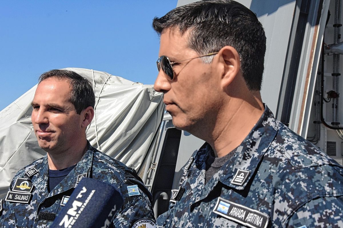 Maximiliano Gastón Freile, comandante de la lancha rápida ARA Indómita, y Nicolás Salinas, comandante del patrullero oceánico ARA Contraalmirante Cordero, brindaron mayores precisiones sobre ambas embarcaciones a los medios de prensa que se acercaron al puerto.