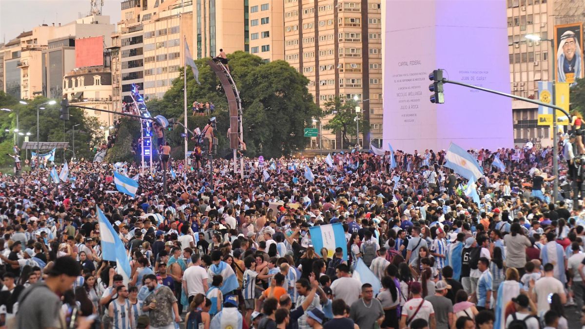 El Obelisco quedó corto para los festejos de la gente tras la clasificación de la Selección argentina a la final del Mundial de Qatar, por lo que gran parte de la Avenida 9 de Julio se vio desbordada por una inmensa marea celeste y blanca.