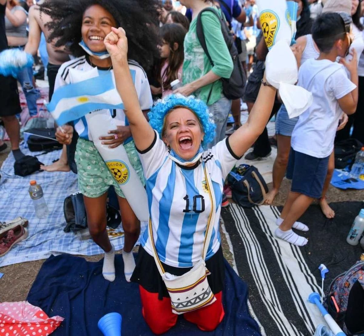 En las playas de Mar del Plata también se festejó el triunfo de la Selección argentina. Foto NA/José Scalzo.