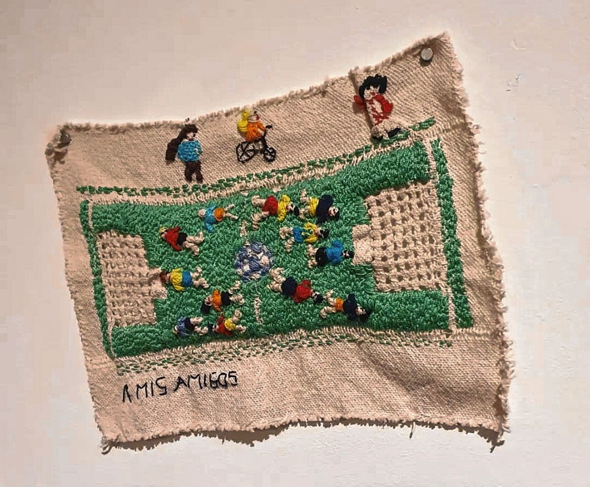 “Marcelo no le había contado a nadie de ese diario, pero había dejado escrita la dirección de la casa de su papá para que, ante cualquier suceso, se lo enviasen. Cuando lo recupera en la inauguración del Museo Malvinas, yo se lo pido para hacer un diario textil que después se transformó en otra cosa y quedó plasmado en la muestra “Archipiélago”. Me costó mucho leer el diario porque tiene cuestiones emocionales muy fuertes. Le habla mucho a su mamá, a sus amigos hinchas de Rosario Central, tiene un relato del día de su cumpleaños que es bastante desgarrador. Yo tenía 23 años cuando fue la guerra y me hizo revivir muchas emociones”, relata María Blanco.