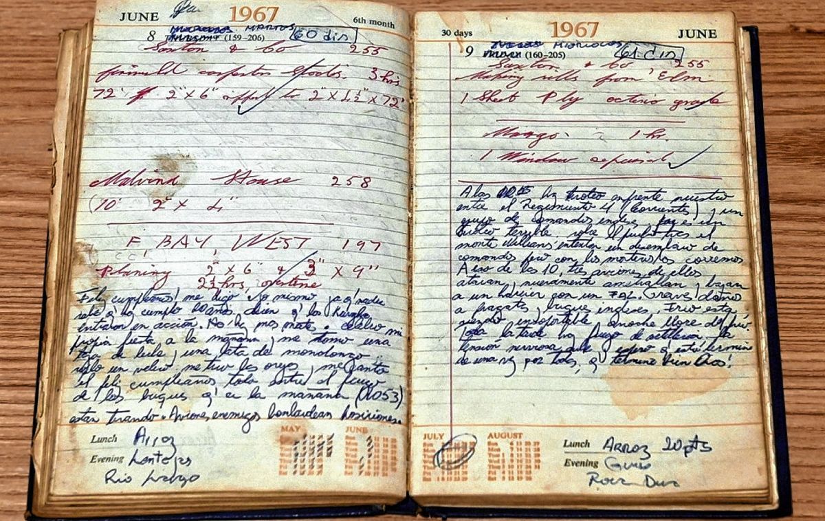 En su barrio conoció a Marcelo Calitri, quien estuvo 74 días en una trinchera con agua hasta los tobillos durante la Guerra de Malvinas. Una vez desembarcado en la Isla, Marcelo encontró una agenda vieja en un aserradero y la convirtió en un diario personal que atesoró escondido en su parca. Allí registró sentires y pesares; palabras de amor para su madre y sus amigos; el nombre de sus compañeros de trinchera, el menú diario y las obligaciones sin sentido que como soldados debían cumplir: afeitarse, mientras los atravesaba el hambre y frío. Finalizada la guerra, los despojaron de todas sus pertenencias.