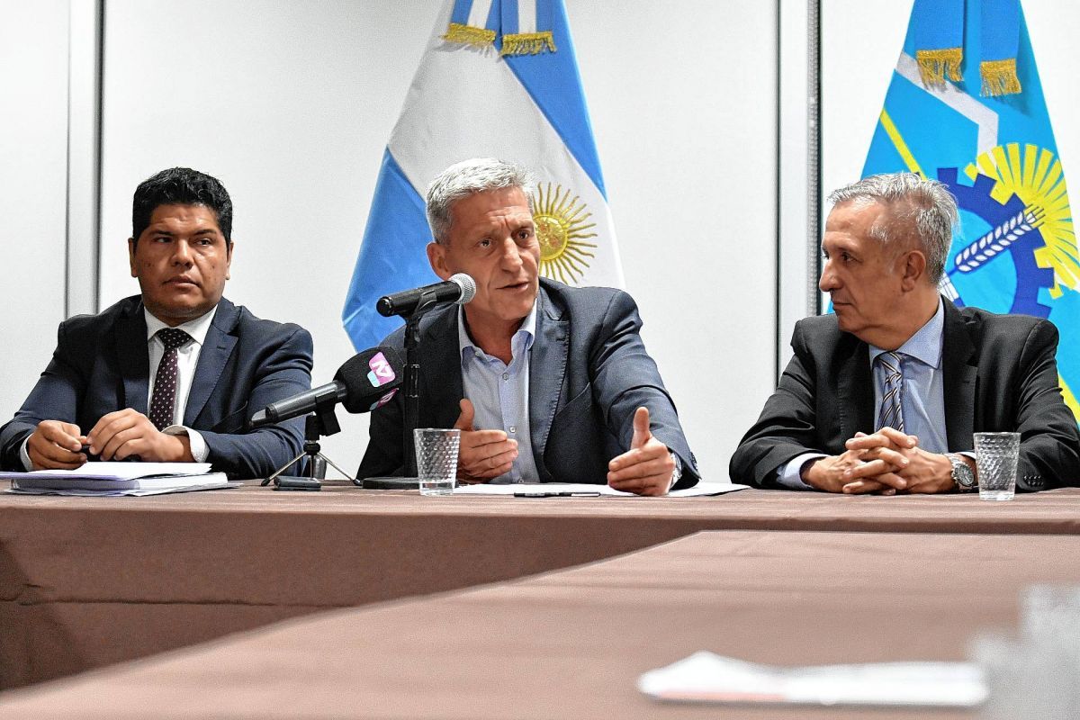 Acompañaron al gobernador Arcioni y a los representantes gremiales, los ministros de Economía, Oscar Antonena; de Gobierno y Justicia, Cristian Ayala; y de Educación, José María Grazzini; el secretario de Trabajo, Tobías Gaud; entre otras autoridades presentes.