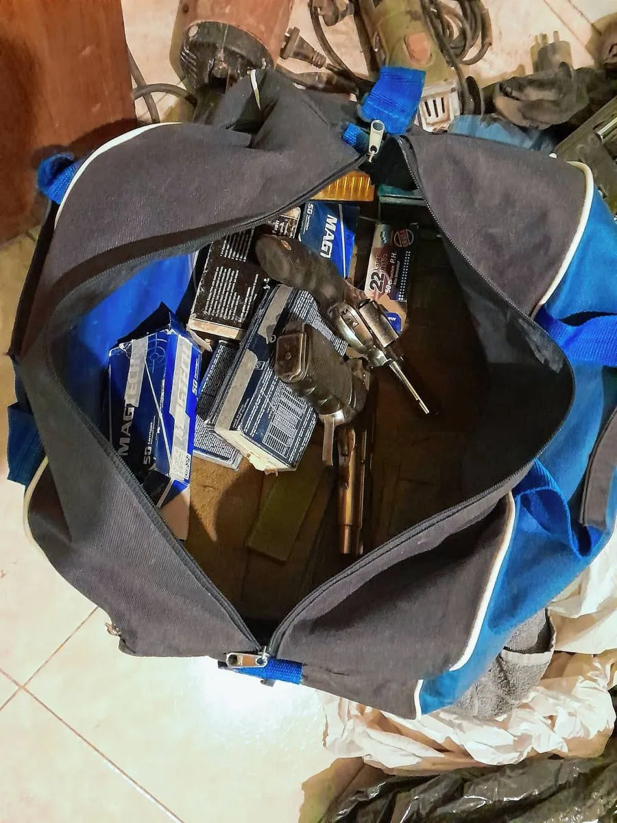 Secuestraron un arma de fuego tipo fusil con empuñadura de madera; 16 cartuchos de munición múltiple; una vaina roja con inscripción 12 y 4 vainas color gris calibres 12/70 y otra calibre 12, además de un cartucho a bala calibre 357 marca Magnum; un teléfono celular y un automóvil Volkswagen Gol Trend color negro patente NVA 680; un arma de fuego tipo pistola con inscripción Detective Hi-Power y dos cargadores conteniendo uno de ellos un cartucho a bala con inscripción 9 mm. Lugar, además de otra arma de fuego marca Taurus calibre 357 Magnum y otros 300 cartuchos a balas de diferentes calibres; además, en una funda de chaleco color verde secuestraron un teléfono celular táctil marca Samsung modelo SM- A50SG; otra funda de plástico color marrón y prendas de vestir. También es de destacar el secuestro de una granada de mano fmk 2 con cuerpo de hierro y una vaina con fulminante colocado.