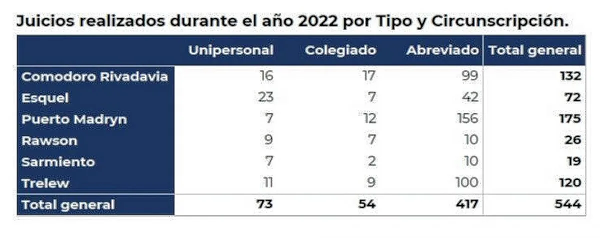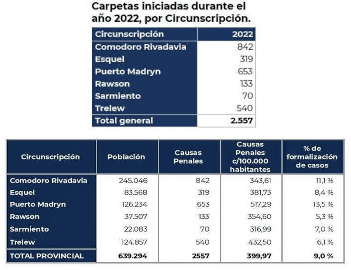 Trelew (Agencia) Un informe estadístico publicado por el Poder Judicial de Chubut en su página web pone en evidencia, claramente, que los fiscales de Jorge Miquelarena no trabajan tanto. Que de 1.000 denuncias que recibieron durante 2022 solo el 0,5 por ciento terminó elucidándose en juicio oral y público, y que de “2.529 casos” que deberían haber investigado únicamente 127 llegaron a juicio.