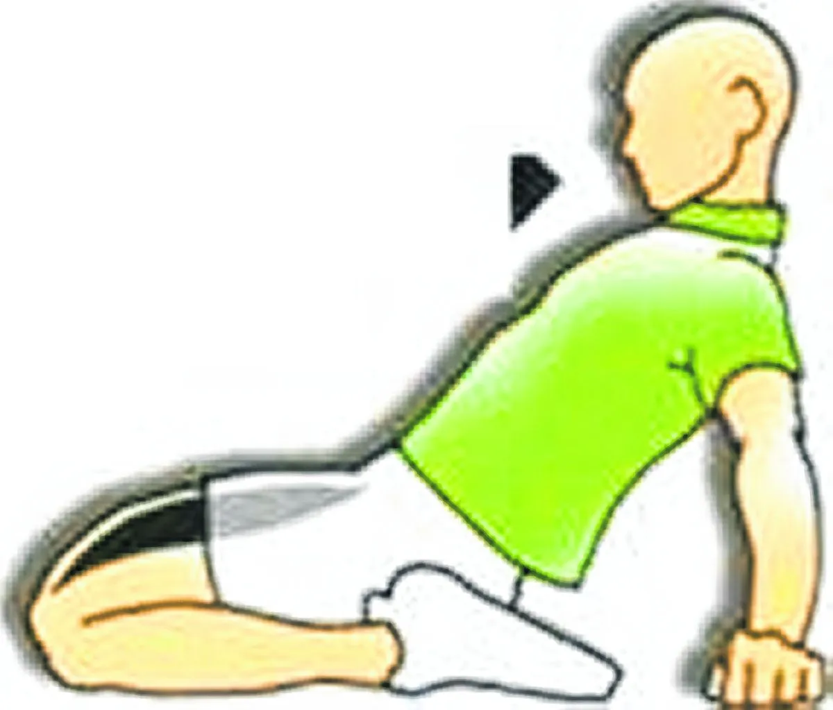 Estiramiento de cuádriceps: De rodillas, sentado sobre los talones, déjate caer suavemente hacia atrás todo lo que puedas, ayudándote del apoyo de tus brazos contra el suelo.