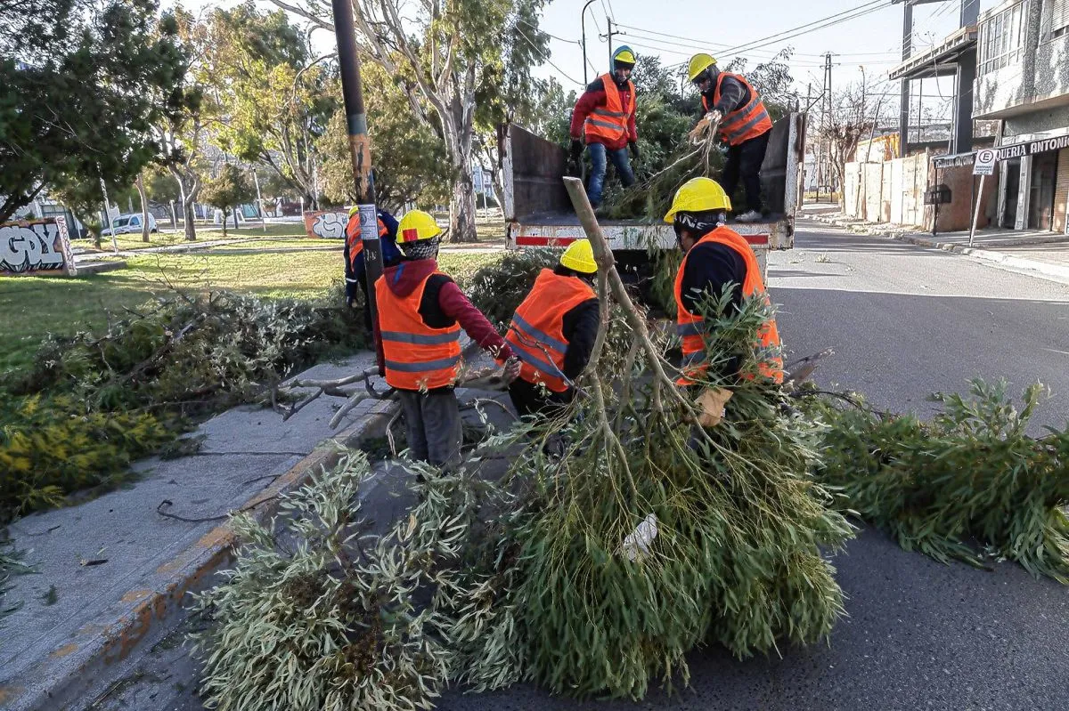 La Municipalidad continúa llevando adelante tareas en todo el ejido urbano de Comodoro Rivadavia con el fin de brindar soluciones ante el fuerte temporal de viento que afectó a la zona e impactó distintas estructuras en toda la ciudad.