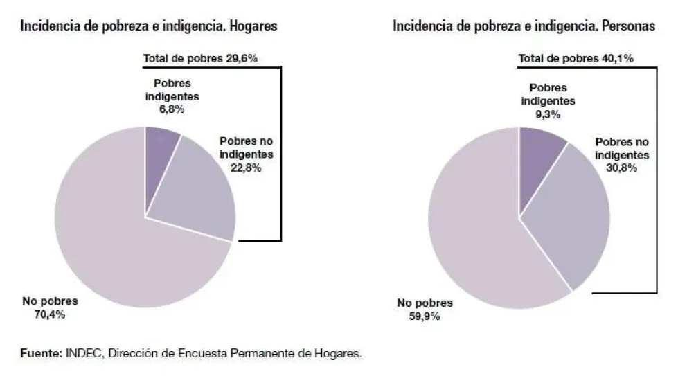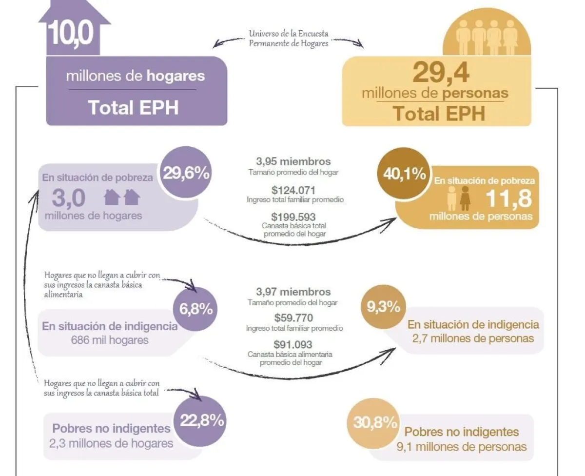 Con los informados este miércoles, la pobreza afectó a más de 18,4 millones de personas y la indigencia a 4,3 millones, según los datos oficiales proyectados para todo el país, y no únicamente a los conglomerados urbanos medidos por las estadísticas oficiales.