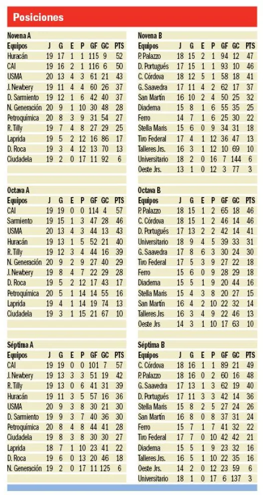 En la novena, en una buena parte del torneo, CAI fue el puntero, pero desde la victoria del Globo en la décima séptima fecha por tres a dos, la competencia ha tenido un elenco que se ha hecho fuerte, alcanzando en este fin de semana una sólida victoria ante Rada Tilly por cuatro a cero.