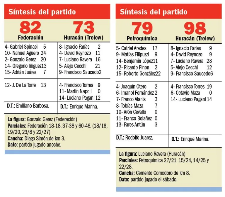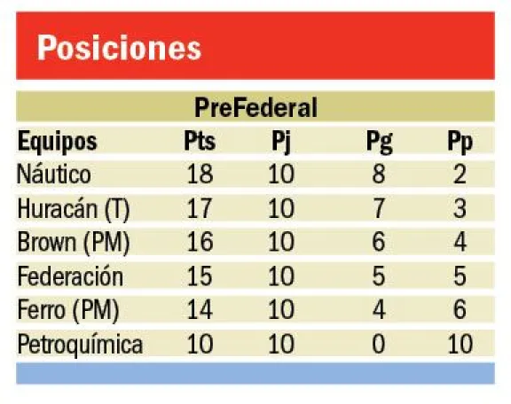 Federación superó anoche a Huracán de Trelew y se quedó con el cuarto puesto de la clasificación a los cruces del PreFederal de básquetbol de varones mayores. En tanto que Náutico Rada Tilly se impuso a Brown de Madryn y obtuvo el número uno de la fase regular. Ahora se tiene que definir la sede el cuadrangular final para los dos ascensos a la Liga Federal.