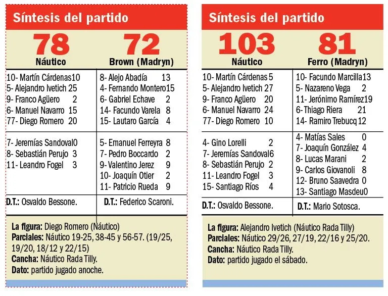 Por su parte Náutico ratificó el favoritismo que adquirió cuando sumó a Diego Romero, completando un gran fin de semana al vencer el sábado a Ferro de Madryn y ayer a Huracán de Trelew, para situarse en la parte más alta de las posiciones y ahora ser uno de los principales aspirantes al título y al ascenso.