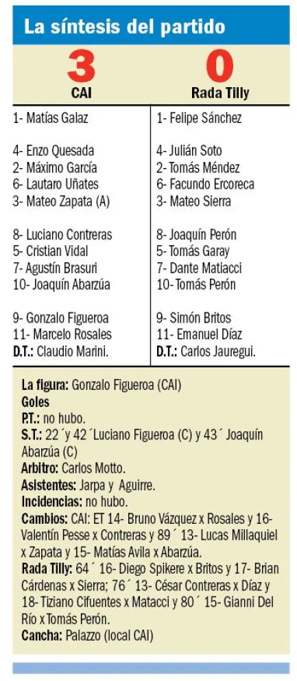 En líneas generales la CAI fue mejor, pero le faltó efectividad para concretar sus intentos; mientras Rada Tilly hizo su juego y estuvo bien ordenado, pero no pudo aguantar en el final y sufrió la cuarta derrota en serie.