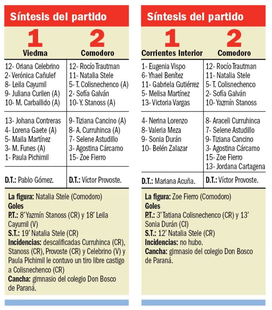 Los dos juegos de ayer fueron muy complicados. Contra las rionegrinas, que fue bastante picante, celebró a falta de 41 segundos con el tanto de Natalia Stele, mientras que después, en un juego de ida y vuelta, fue también Stele la que puso el dos a uno en el segundo tiempo, pero de igual modo el equipo fue superior y el que más buscó, pese a que se salvó en algunas oportunidades.
