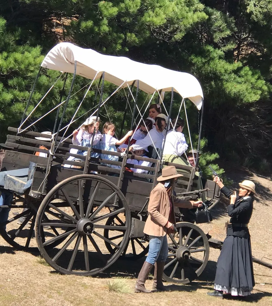 A tren completo partió el Viejo Expreso Patagónico de la Estación Esquel para, a mitad del recorrido, encontrar al grupo de forajidos liderados por los emblemáticos personajes Jack Bradford y Coyote Kid.