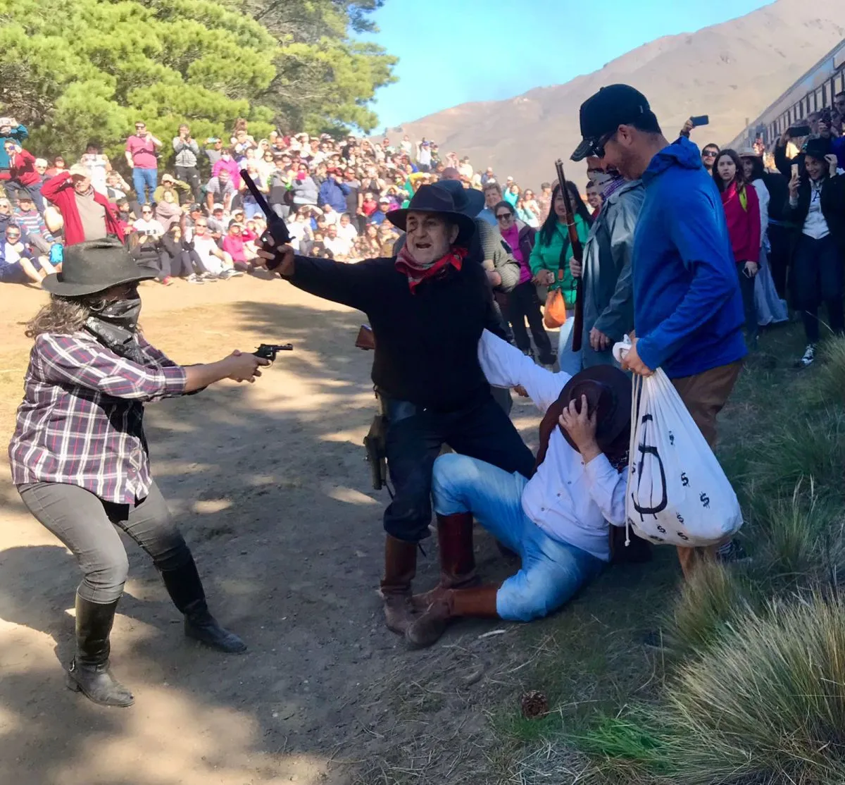 La puesta en escena sorprendió a las decenas de pasajeros que colmaron los vagones del ferrocarril. Durante varios minutos los bandoleros desplegaron todo el acting, con vestimenta de época y movilizándose a caballo.