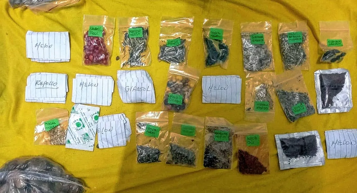 En su equipaje lleva varias especies de semillas que intercambia con pequeños productores que encuentra a la vera de la ruta.