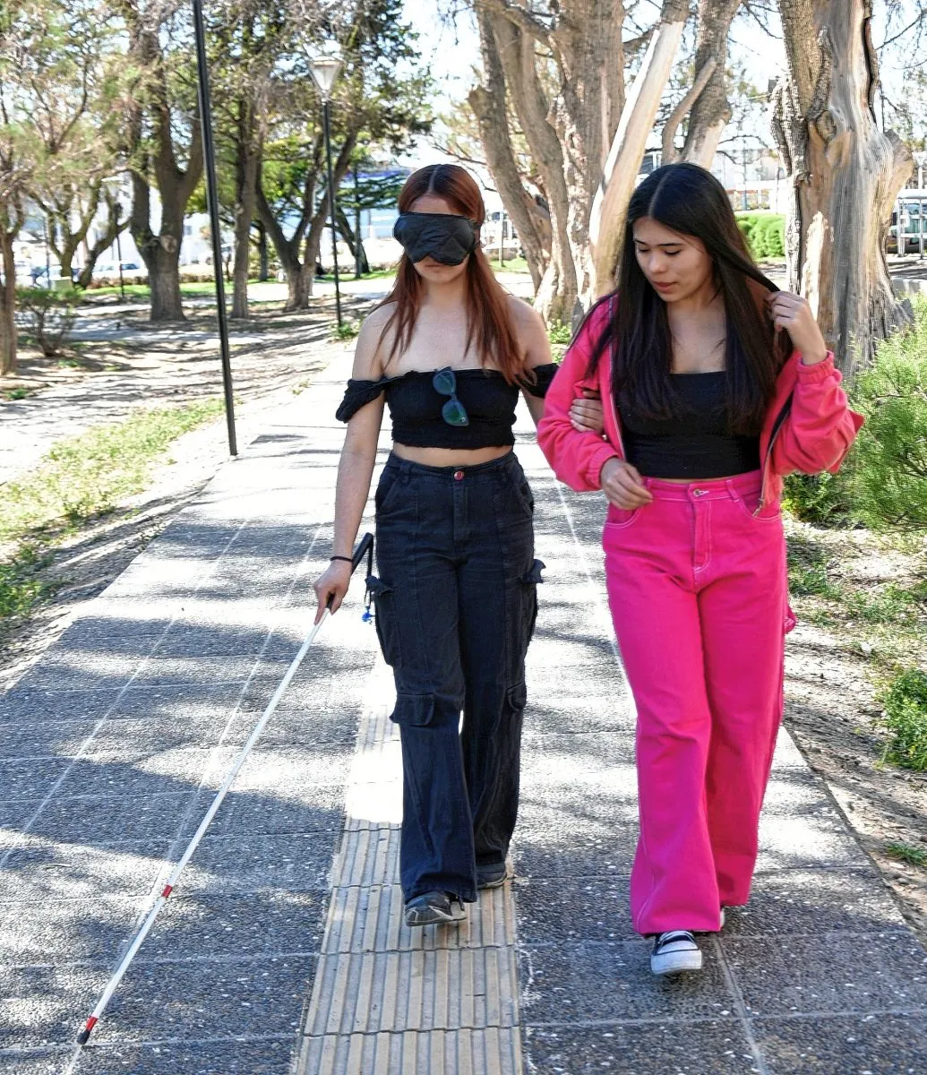 Entre las actividades, estudiantes de la escuela de arte, de la escuela primaria 209 y comunidad en general, vivieron la experiencia del bastón blanco. “Para tener más realidad y percepción a la hora de realizar la actividad, llevan un antifaz que les cubre la vista completamente y por supuesto van con el bastón y se van guiando con la persona a cargo”, explicó a Crónica Dafne Velázquez, pasante de la Escuela Nº 743.