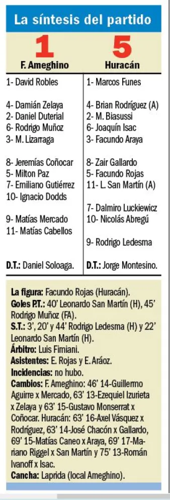 Mientras las piernas y el aire acompañaron, Ameghino pudo equilibrar la balanza. Por allí se explica el 1-1 con el que terminó el primer tiempo, pero en el complemento, las diferencias se apreciaron con total desparpajo, reflejándose en el marcador.