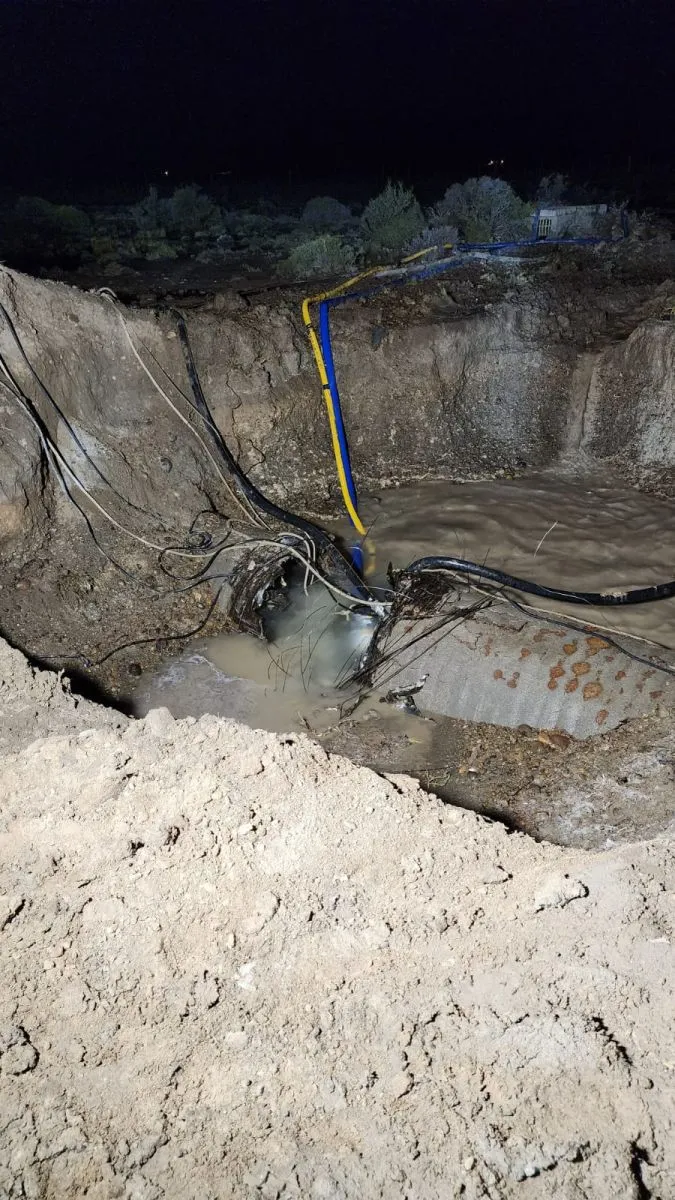 Ayer, martes 21 desde las 21hs, las cuadrillas operativas se encuentran abocadas a las reparaciones de la avería detectada cerca de la estación de bombeo de Valle Hermoso.