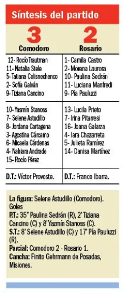 Después administró la diferencia y se dirigió al triunfo con tranquilidad, más allá del descuento de las rosarinas, debido a que ganó con total justificación, arribando del mejor modo al cruce de hoy frente a las correntinas que será determinante.