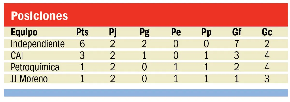 Con JJ Moreno (1 pto.) y Petroquímica (1 pto.) ya eliminados, quien tiene una posibilidad matemática es la C.A.I. que suma tres unidades por la victoria de la primera fecha (2-0) ante Moreno.