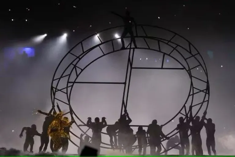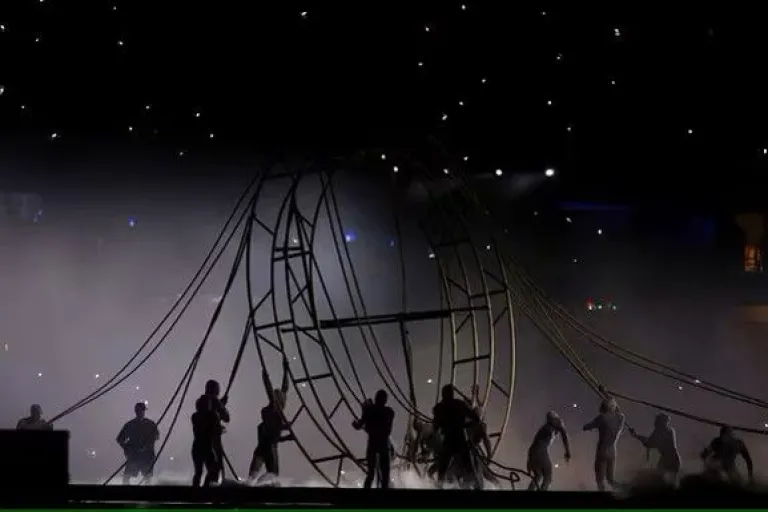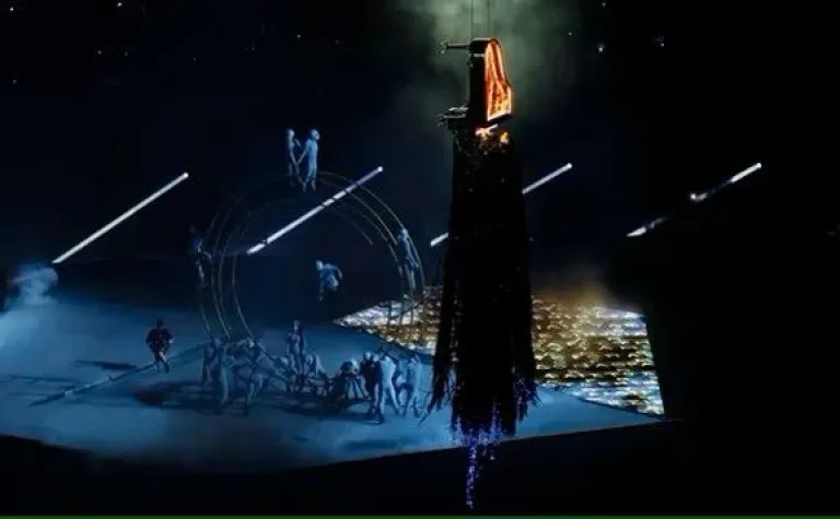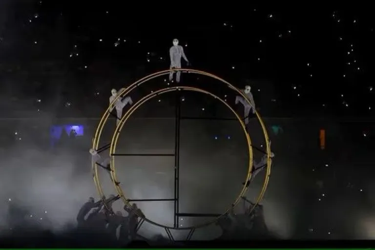 âï¸El viajero anónimo con un traje dorado sobre el mapa del mundo. El show que pone punto final a los Juegos Olímpicos 2024 está llegando a su fin. #Paris2024 #JuegosOlímpicos pic.twitter.com/dMuIZCySPC