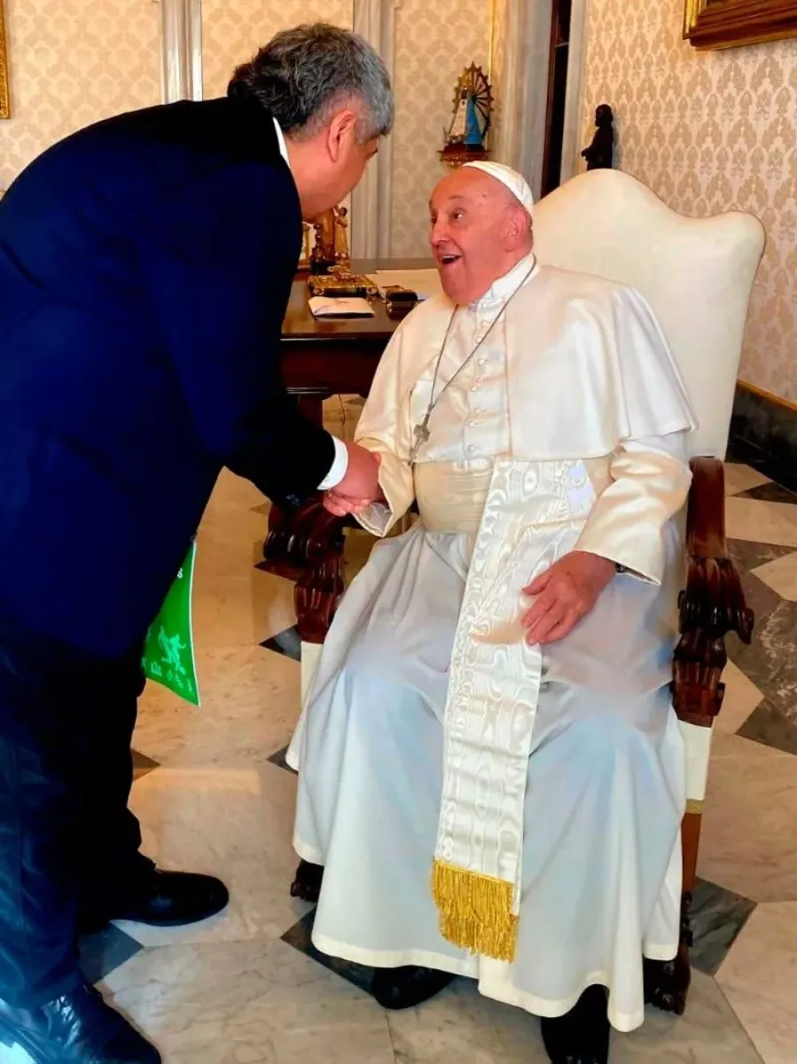 El Papa Francisco saluda a Pablo Moyano durante su encuentro en el Vaticano.